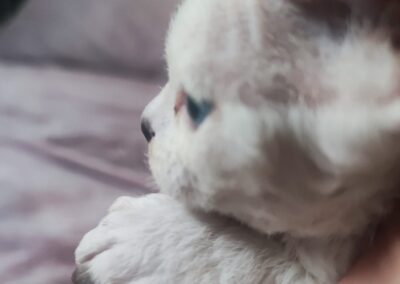 Choć Aiko jest jeszcze bardzo młodziutka, już dziś wyróżnia się proporcjonalną budową, dużymi, wyrazistymi uszami oraz hipnotyzującym spojrzeniem błękitnych oczu. W codziennym życiu zachwyca żywiołowością i ogromną chęcią zabawy – to koteczka, która potrafi wnieść radość w każdą chwilę.
