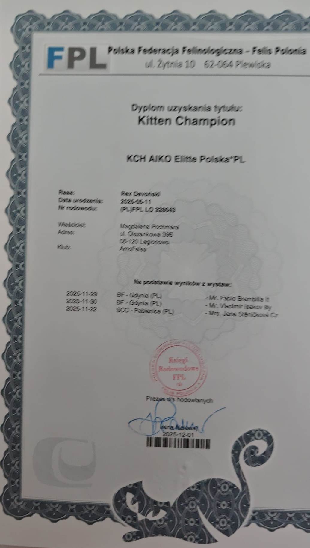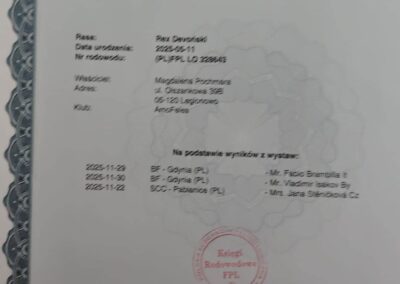 Wierzymy, że w przyszłości Aiko nie tylko zachwyci swoim wyglądem, ale także przekaże swoim kociętom najlepsze cechy rasy – otwartość, czułość i wyjątkowy devonkowy urok.